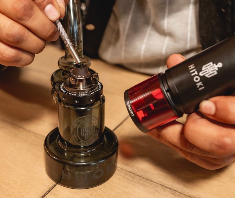 Perfect for both home use and on-the-go sessions, the Saber Recycler Kit offers versatility and top-tier performance. The base device can also be used with other Hitoki attachments or your favorite glass pieces, thanks to its adaptable design.